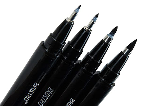 Brustro Fude Hard-Tip Brush Pens | Black | Pack of 4