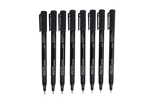 Brustro Professional Pigment Fineliner Pen Set of 8 | Black | Ideal For Technical Drawing,Waterproof,Artist Illustration,Sketching,Mandala