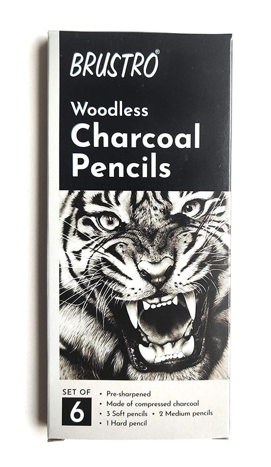 Brustro Woodless Charcoal Pencil Set of 6 (3 Soft, 2 Medium,1 Hard)