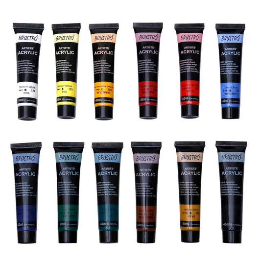 Brustro Artists Acrylic Colour Paint - 12 shades X 40 ml