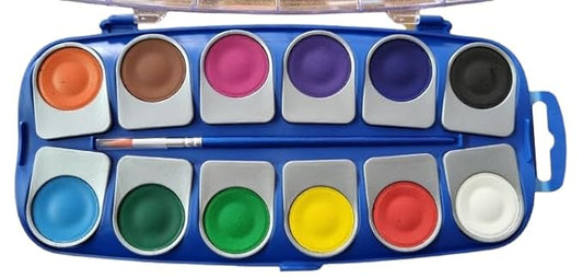 Doms Refillable 12+6 Shades Aqua Water Colour Cakes 30mm| Includes 1 Paintbrush