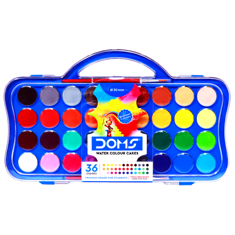 DOMS Water Colours Cake that enable Sharp Minds to create transparent & translucent effect on any water colour surfaces. 36 Vibrant colours are easy to intermix & recreate vivid shades to bring your Masterpiece alive. Smooth and transparent finish with Bright and intense colours